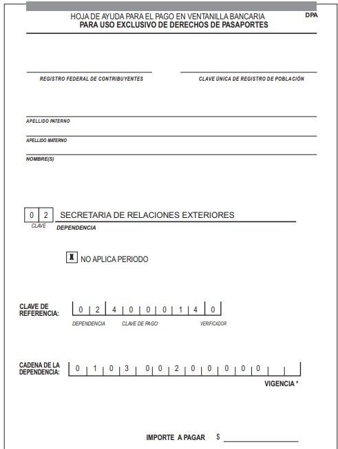 Este es el formato de pago del pasaporte mexicano, se puede pagar en cualquier banco.