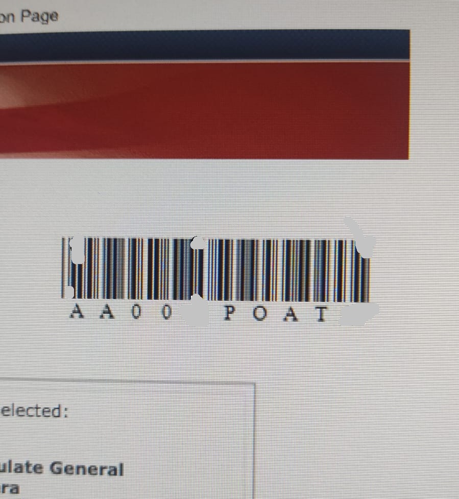 Formato de confirmación ds160 (Imagen superior) Y la imagen inferior es la del formato de Instrucciones que es donde viene el lugar fecha, hora y domicilio de su cita. El código de barra debe ser igual en ambos documentos en este caso AA00 POAT