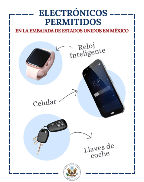 La embajada acaba de informar los articulos permitidos que puede llevar el día de su entrevista dentro de las instalaciones de la misma embajada o de los consulados.